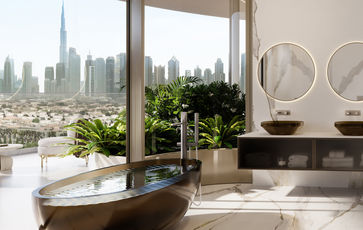 The offerings comprise eight 2-story 5-6 bedroom Sky Mansions and four 3-story 6-7 bedroom Sky Palaces. Ranging from 9,500 sq. ft to 19,800 sq. ft, each residence boasts ceiling heights of 11.5 ft, with some reaching up to 26.2 ft. While residences come unfurnished, they feature top-notch finishing and equipment from renowned brands such as OBEGI, Poliform, Gaggenau, and Antonio Lupi.